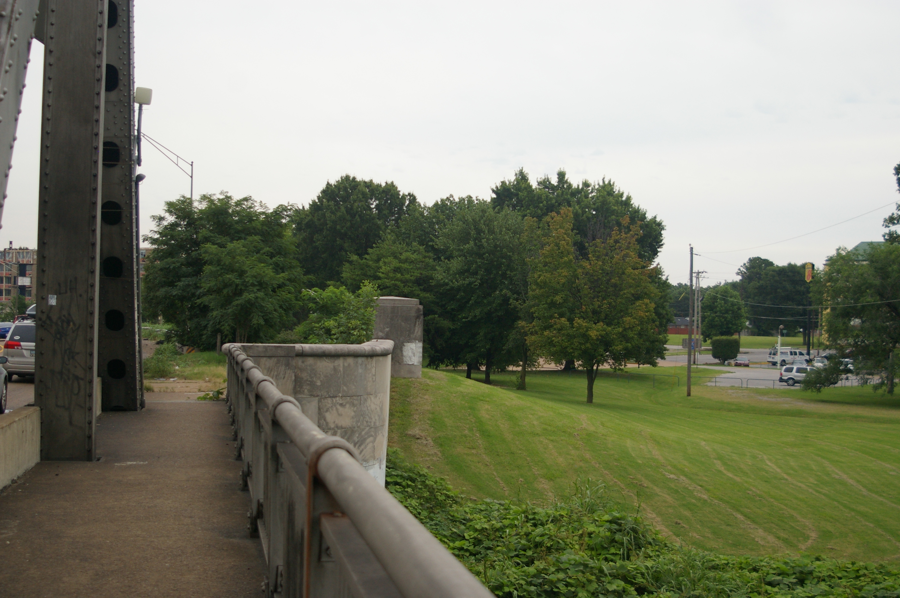 Looking East on the Memphis side. The Grassy area to the right is E.H.Crump Park.