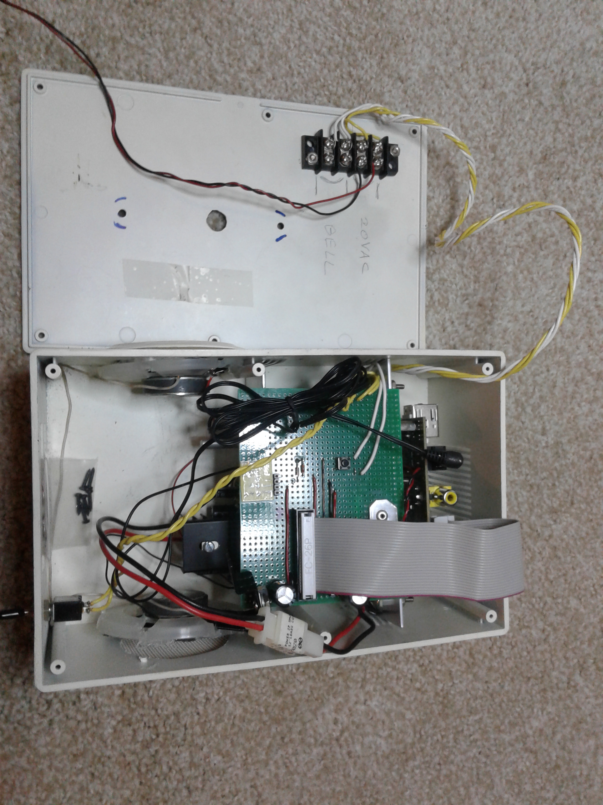 This project consists of a Raspberry Pi model B version 2, small 2 watt audio amplifier, speakers, 2 variable voltage power supplies, small doorbell size enclosure. All of this is powered by the existing 20VAC doorbell transformer and wiring from the old doorbell. The existing doorbell had 2 sets of twisted pair wiring; one pair going back to the transformer and one pair to the doorbell at the front door. Any other wiring arrangement would have required an entirely different design.